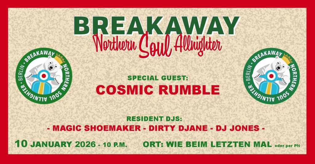 We’re kicking off the new year with a bang: On Saturday, January 10th, 2026, join us in Berlin for the first Breakaway Northern Soul Allnighter of the year!
